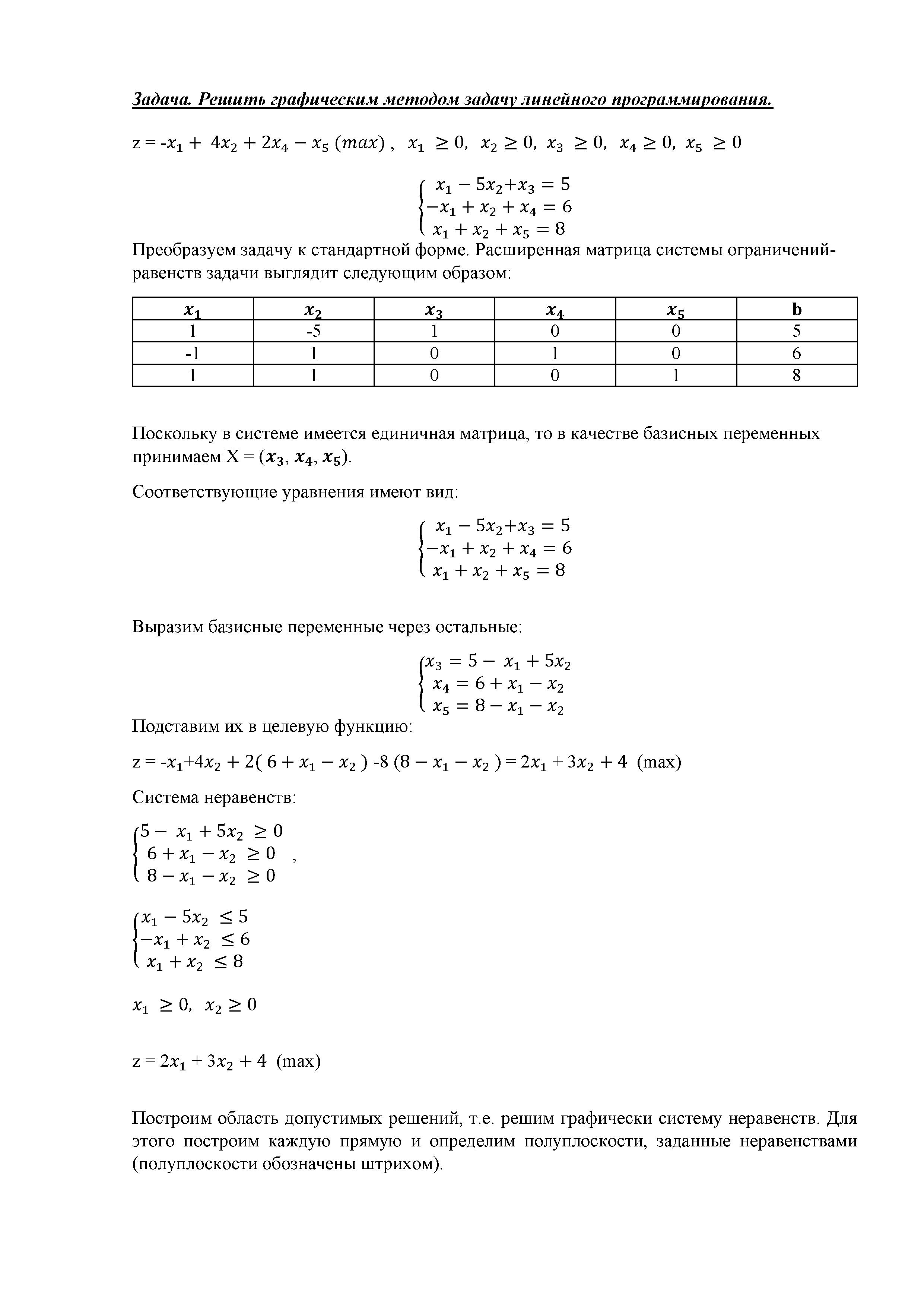 Пример 2. Решить графическим методом задачу линейного программирования z = -x1 + 4×2 +2×4 +x5 (max)