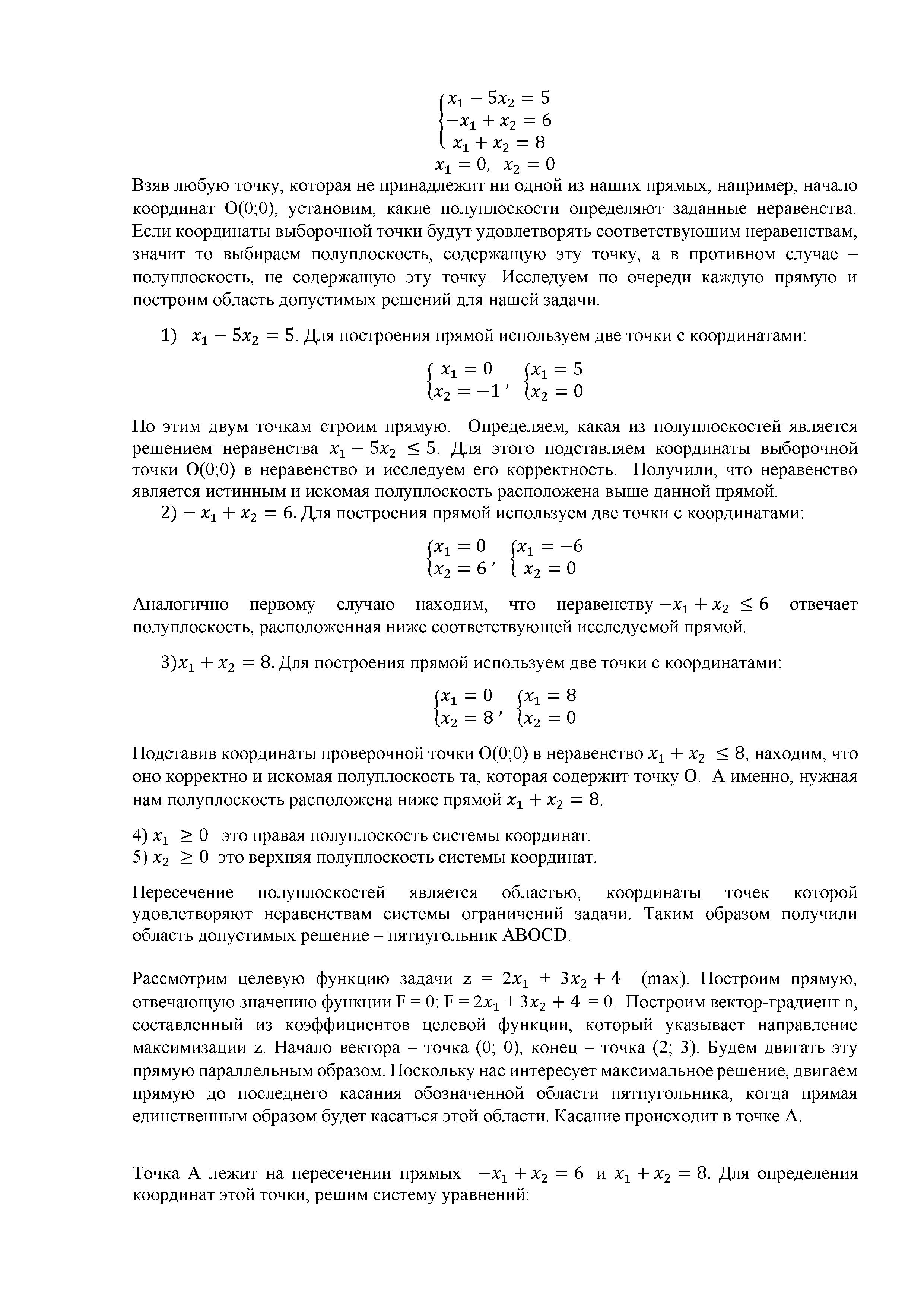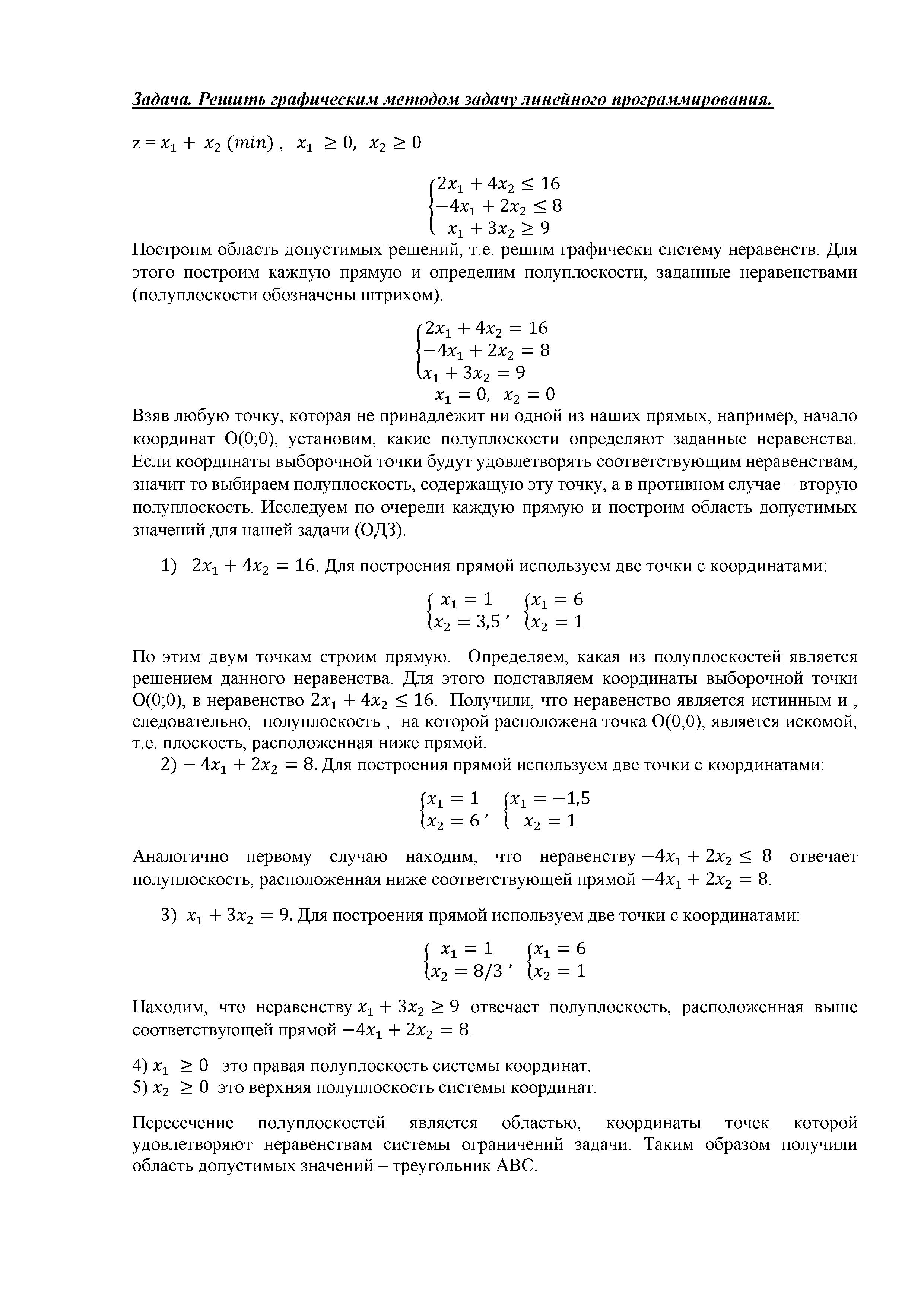 Решение графическим методом задачи линейного программирования