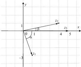 Согласно теоретической сноске выше, имеем, что числу z1 = 1 — 3i соответствует точка с координатами (1; -3), z2 = 4 + i — точка (4; 1), а комплексному числу z3 = 5 соответствует точка с координатами (5; 0).